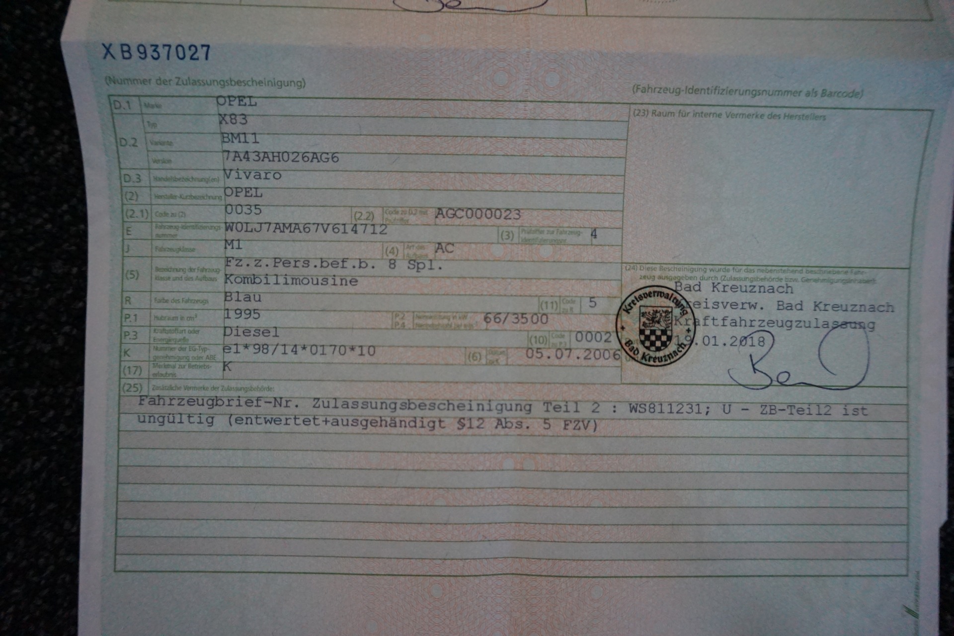 1 Kombilimousine, Fabr. OPEL, Typ Vivaro, EZ: 2006